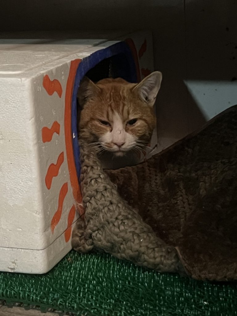 ご飯食べたあと、「いるかな?」と思って、こっそりのぞいたら、別館に入ってた。寒いもんね。